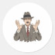 This sticker features a sharp-dressed mob boss in a vintage suit and fedora, arms raised in a commanding gesture. Perfect for adding a touch of retro authority and style to laptops, notebooks, or any surface.