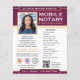 Professional Notary Public flyers with a profile photo, logo and accreditation symbols. This editable template can be personalised with a name, qualifications, area served, contact details and a list of services. Add your company logo and certification marks for branding, and connect clients to your website with a scannable QR code, and to schedule appointments. A classic blend of traditional and contemporary style, creating an elegant and friendly appearance, with fully customisable text to fit your business brand. Perfect for a Notary Public, Loan Signing Agent, Certified Notary Trust Delivery Agent (CNTDA), Mobile Notary, Apostille or other legal role — an effective way to advertise your business! Printed colours: dark pink, plum, white and gold colour. Shop the online collection for more popular product ideas and supplies designed for notaries!