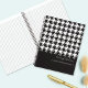 This design features a classic black and white houndstooth pattern. Combined with your own personalised text, this composition creates a modern chic and unique spiral notebook.