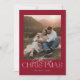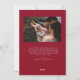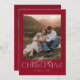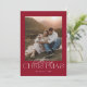 This Christmas photo card features a modern, yet festive design with a single prominent photo on the front. The background is a rich red colour. Centred above or below the photo, the text "Merry Christmas" is displayed in a elegant and modern font in white providing a striking contrast against the green background. The simplicity of the single-photo layout allows the image to take centre stage, making it perfect for a family portrait or a special moment from the year.