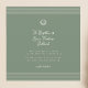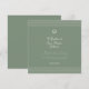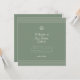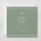 A classic yet modern square baptism invitation in deep sage green, featuring subtle top and bottom stripes, a hand-painted shell with a cross, and a soft script font for an elegant, meaningful look.