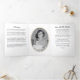 Elegant black and white memorial program with gold oval photo frames offers a timeless and dignified tribute to honor the life and legacy of a loved one. This tri-fold funeral program features a refined layout that balances meaningful content with classic design, including sections for an obituary, order of service, acknowledgments, a poem, and two photos. The structured format guides attendees through the funeral, memorial service, or celebration of life with grace and clarity, while the large photo panels allow you to showcase cherished memories. Designed with a minimalist aesthetic, this program pairs crisp black text with ample white space, ensuring all details are easy to read and thoughtfully organized. The use of gold-bordered photos adds a warm, elegant touch without distracting from the overall simplicity. Ideal for both traditional and modern memorials, this design provides a professional and heartfelt way to share the story of a loved one’s life. Fully customizable, it allows families to create a personal and respectful keepsake that honors memory and meaning.
