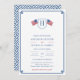 The focal point of this design is a simple monogram crest decorated with 2 USA flags. The design also features a "Greek Key" border and pattern backer. I've set the template up for a wedding invitation but all of the text fields are customisable to your needs. You can move, delete or add text fields by entering the design tool. You can also change the contrast colour of the Greek Key border on the front and the pattern on the back (shown here as a dark blue) to any colour you like by entering the design tool (underneath the text customisation area, click to "customise further") then changing the background colour on each side.