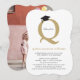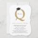 This classic and simple gold and white graduation party invitation card design features a bold monogram letter 'Q' of the graduate with a mortar board / graduation cap as an accent.