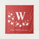 This stylish Christmas tapestry features your name and monogram along with a lovely floral wreath in red and white.
