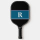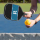 This stylish pickleball paddle features a classic monogram and blocks of colour. Black, blue, and white with white text, you can edit the monogram to personalise it by using the editing tool in the listing. It's a stylish, modern, and minimalist gift for a pickleball player.