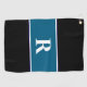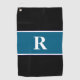 This stylish golf towel features a classic monogram and blocks of colour. Black, blue, and white with white text, you can edit the monogram to personalise it by using the editing tool in the listing. It's a stylish, modern, and minimalist gift for a golfer.