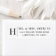 A simple monogram return address label with classic single initial mongram and family name and address.