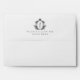 Black and White Monogram Crest, wedding envelope. Vintage inspired Regency-Era baroque art monogram crest. Features, an elegant clean black and white typography design.