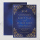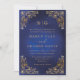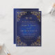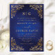 Classic Monogram Gold Frame Ornate Blue Wedding Invitation