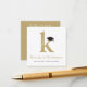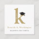 This classic and simple gold and white graduation enclosure card design features a bold monogram letter 'k' of the graduate with a black mortarboard / graduation cap as an accent.