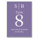 Classic monogram lavender wedding table number for a wedding reception, rehearsal dinner, wedding and bridal showers, or anniversary dinners.