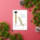 Trendy Classic Monogram Gold Letter K With Black Graduation Cap, Real Foil Pressed / Foil Stamping Photo Grad Thank You Card.