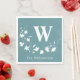 Perfect for newlywed and wedding gifts, anniversary parties, and more, these beautiful monogrammed napkins feature your initial and family last name with a classic rustic botanical wreath design in teal. Easily change the background colour using the customise further tool.
