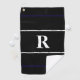 This stylish golf towel features a classic monogram and solid stripes. Black, blue, and white with white text, you can edit the monogram to personalise it by using the editing tool in the listing. It's a stylish, modern, and minimalist gift for a golfer.