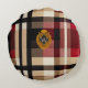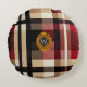 Classic Monogram Stylish Plaid Beige Red & Black Round Cushion