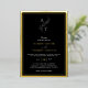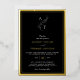 Black & white timeless and stylish monogram leaf wedding invitation with real foil gold border and foil script.
