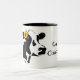 This two-tone classic mug is shown with a cute black and white cow print with Got Cookies.
