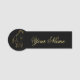 Running horse in gold colour Name Tag template ideal for horse care, horse training, veterinarian services.