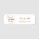 This badge looks professional and it's in keeping with my branding. The magnetic attachment is strong and stays in place all day. The quality of the materials and the colors were exactly as pictured. I couldn't be happier! The printing is clear and easy to read