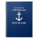 Classic Nautical Anchor and 5 Stars Captains Log Navy Blue Spiral Notebook.