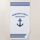 Classic Nautical Anchor with Your Custom Family Name Beach House Towel. This personalised towel will not just keep you dry but also is a fun conversation piece. Makes a great gift item for any occasion.