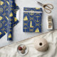 Use this classic nautical wrapping paper for all your nautical themed events, such as weddings, parties beach housewarmings, baby showers, birthdays. Gold nautical elements, lighthouse, ship’s wheel, anchor, and sailboat, framed by gold rope with nautical knots against a navy blue background.