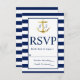 Classic Nautical Navy Blue Stripes Wedding RSVP Card