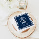 This elegant navy wedding napkin features a rope circle monogram with anchor illustration framing the couple's initials. Names in graceful script and the wedding date complete the design against a rich navy blue background. A refined choice for nautical-themed receptions or destination celebrations. Customise the monogram, names, and date to make it yours.