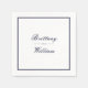 Classic navy blue bride and groom elegant script wedding napkins. Navy blue border.