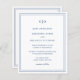 Classic style navy blue all in one budget wedding invitation featuring a simple and minimal design with your monogram at the top and your event details surrounded by a double border. The fonts alternate between and elegant script, a traditional serif and minimalist sans serif fonts. The back has your guest details along with an optional QR Code (if you prefer, you may remove the QR Code in the design editing tool). This invitation is great for a formal wedding.
