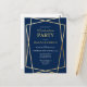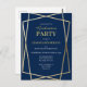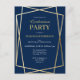 Celebrate your Class of 2025 graduation with family and friends with this elegant blue and gold geometric graduation party invitation. This design features a formal style in blue and gold with gold geometric accents.