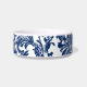 An elegant navy blue damask pattern set against a pristine white background, showcasing intricate floral motifs and graceful curves. This design radiates timeless sophistication and charm.