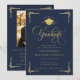 Classic Navy Blue Gold Graduation Invitation