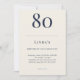Classic navy and cream minimalist birthday invitation with elegant typography for a 80th celebration. Name age date time location and RSVP are fully editable so you can customize for any adult birthday event.
