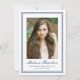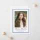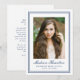 Share your graduate’s accomplishment with this timeless navy blue photo graduation announcement, featuring a classic double border frame that adds depth and structure to the clean, formal layout. The centered portrait creates a strong visual focus, while the graduate’s name is displayed below in elegant script, followed by their school and graduation year in traditional serif lettering for a balanced and academic presentation. The back provides space for a personalized message, allowing you to announce their achievement and share your pride with family and friends. Perfect for high school and college graduates, this navy graduation announcement offers a refined and enduring way to commemorate this important milestone.