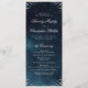 This elegant wedding program cards features traditional flourish corner and classic script on moody navy blue watercolor background, great for classic wedding, vintage wedding.