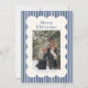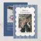 Send elegant holiday greetings with this navy stripe Christmas card featuring a scalloped photo frame and timeless winter style — perfect for modern family portraits.