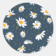 Classic Navy Yellow White Daisy Floral Pattern Round Sticker