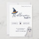 Classic Neutral Halloween Party Invitation. This invitation features a watercolor witch hat, a watercolor Ghost, and a spider. it's a Modern Halloween invitations with a classic-style.