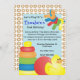 This cute invitation with nostalgic aand classic toys like keys, a stacker, ball and rubber duck are a fun a friendly way to celebrate a baby shower first or second birthday!