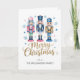 Celebrate the magic of Christmas with this elegant Nutcracker Christmas Greeting Card, featuring a charming trio of nutcrackers dressed in vibrant holiday attire. Perfect for adding a touch of tradition and sophistication to your holiday greetings, this card can be personalized with your family name, making it a unique keepsake for loved ones. Decorated with snowflakes and "Merry Christmas" in a gold-effect script, it captures the timeless spirit of the holiday season and is an ideal choice for families who appreciate classic Christmas motifs.