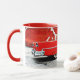 This cool mug features my original photograph of a 1955 red Chevy Bel Air classic car, the whole profile of the car wraps around the mug. Image was processed in an artsy poster style. The handle and inside of the cup are red to complement the artwork.