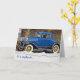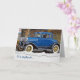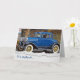Old blue car with dog for getting old birthday with white Bichon Frise dog and torn edge border.