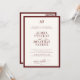 Modern elegant timeless formal monogrammed all in one old money wedding invitation with a deep burgundy frame and classy calligraphy script. Suitable for a romantic vintage heritage style wedding. +++++++++ Easy to personalize with your details and QR code.