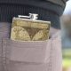 The flask itself is fine. It’s a cheap flask, obviously bought in bulk, however am prepared to overlook that. Given that it is a personalized item, I would have liked to have seen gift boxing instead of the generic packaging. Terrible printing, and/or quality. It’s a cheap, tacky vinyl. It is not cut straight and is also applied in a way that it is overhanging the bottom, causing the glue to catch on items and it will eventually roll and tear, damaging the wrap.