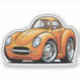 A retro-inspired cartoon car in vibrant orange, featuring curvy body lines, oversized chrome wheels, and bold outlines. A playful vintage-style vehicle design for fans of stylized automotive art.