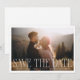 Announce your upcoming wedding with these elegant save the date cards by Redwood and Vine Design Co, featuring a horizontal photo with a thick white border and a text overlay in classic, oversized serif lettering. Customize the back with additional text and a custom QR code leading to your wedding website for more information.