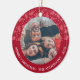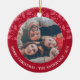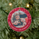 This elegant yet fun ornament includes a floral pattern on the top half and a solid colour on the bottom half. A Christmas message plus the family name and year can be added to make it into a keepsake. A family photo in the centre makes this a unique piece.