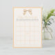 Baby shower bingo card with blank squares for guests to fill out their guesses for gifts that will be opened by the guest of honour